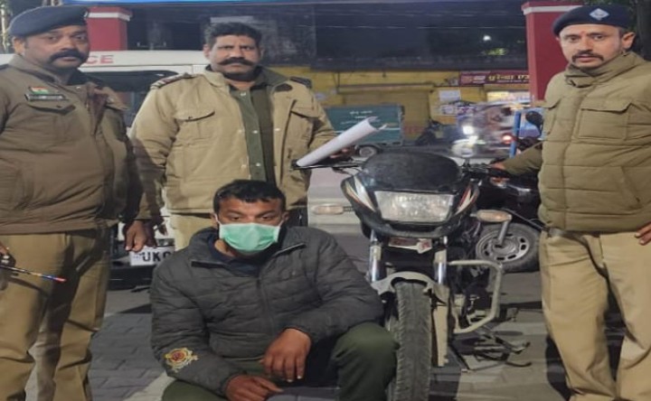हरिद्वार: ज्वालापुर कोतवाली पुलिस ने चोरी की स्प्लेंडर बाइक के साथ एक वाहन चोर को गिरफ्तार किया है। आरोपी नशे...