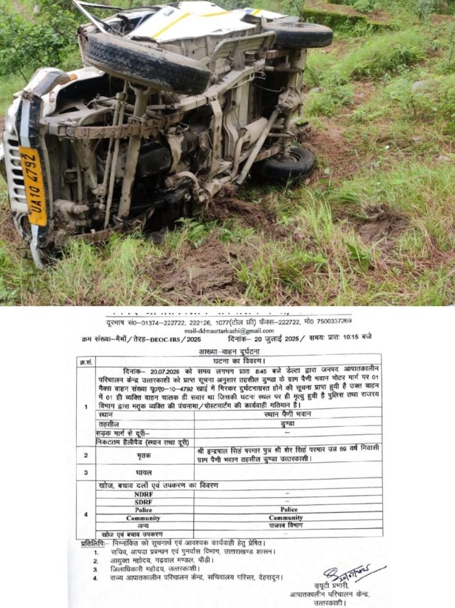 उत्तरकाशी: 20 जुलाई 2025 उत्तरकाशी जिले की डुंडा तहसील में पैणी भवान मोटर मार्ग पर एक दर्दनाक सड़क हादसे में...