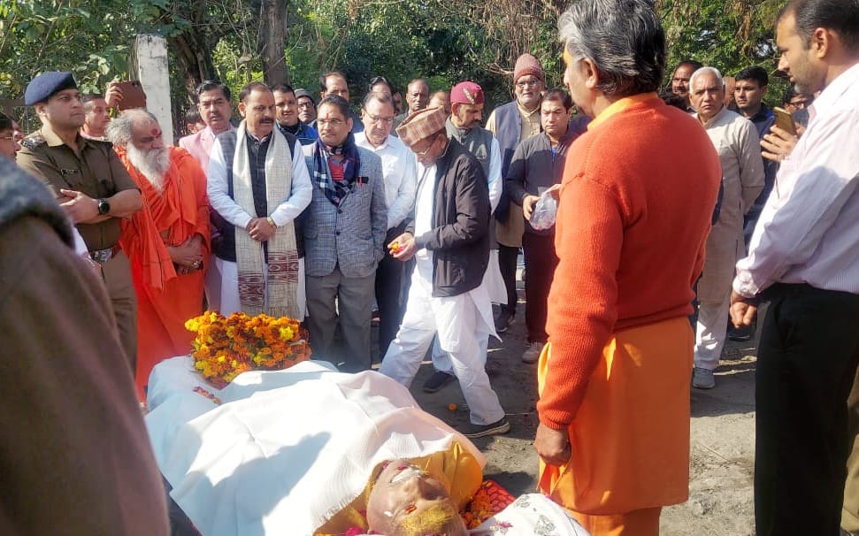 हरिद्वार। उत्तराखंड के पूर्व कैबिनेट मंत्री व वरिष्ठ नेता मोहन सिंह रावत ‘गांववासी‘ को शनिवार को राजकीय सम्मान के साथ कनखल श्मशानघाट पर जन प्रतिनिधियों,अधिकारियों ने अन्तिम विदाई दी। इस दौरान अपार जन समूह ने दिवंगत आत्मा की शांति की कामना करते हुए शोक संतप्त परिजनों को यह दारूण दुःख सहन करने की शक्ति प्रदान करने के लिए ईश्वर से प्रार्थना करते हुए अश्रूपूरित अंतिम विदाई दी। उल्लेखनीय है कि विगत दिवस 08 दिसंबर को उत्तराखंड के पूर्व कैबिनेट मंत्री व वरिष्ठ नेता श्री मोहन सिंह रावत ‘गांववासी‘ का निधन हो गया था। इस दौरान पूर्व कैबिनेट मंत्री विधायक मदन कौशिक,विधायक आदेश चौहान, विधायक ब्रजभूषण गैरोला,वरिष्ठ पुलिस अधीक्षक प्रमेन्द्र सिंह डोबाल,भाजपा जिलाध्यक्ष संदीप गोयल,महासचिव आशु शर्मा,उपाध्यक्ष लव शर्मा,नगर एसपी स्वतंत्र कुमार सिंह, उपजिलाधिकारी अजयवीर सिंह सहित कई राजनीतिक व्यक्ति,अधिकारी व अन्य मौजूद रहे।