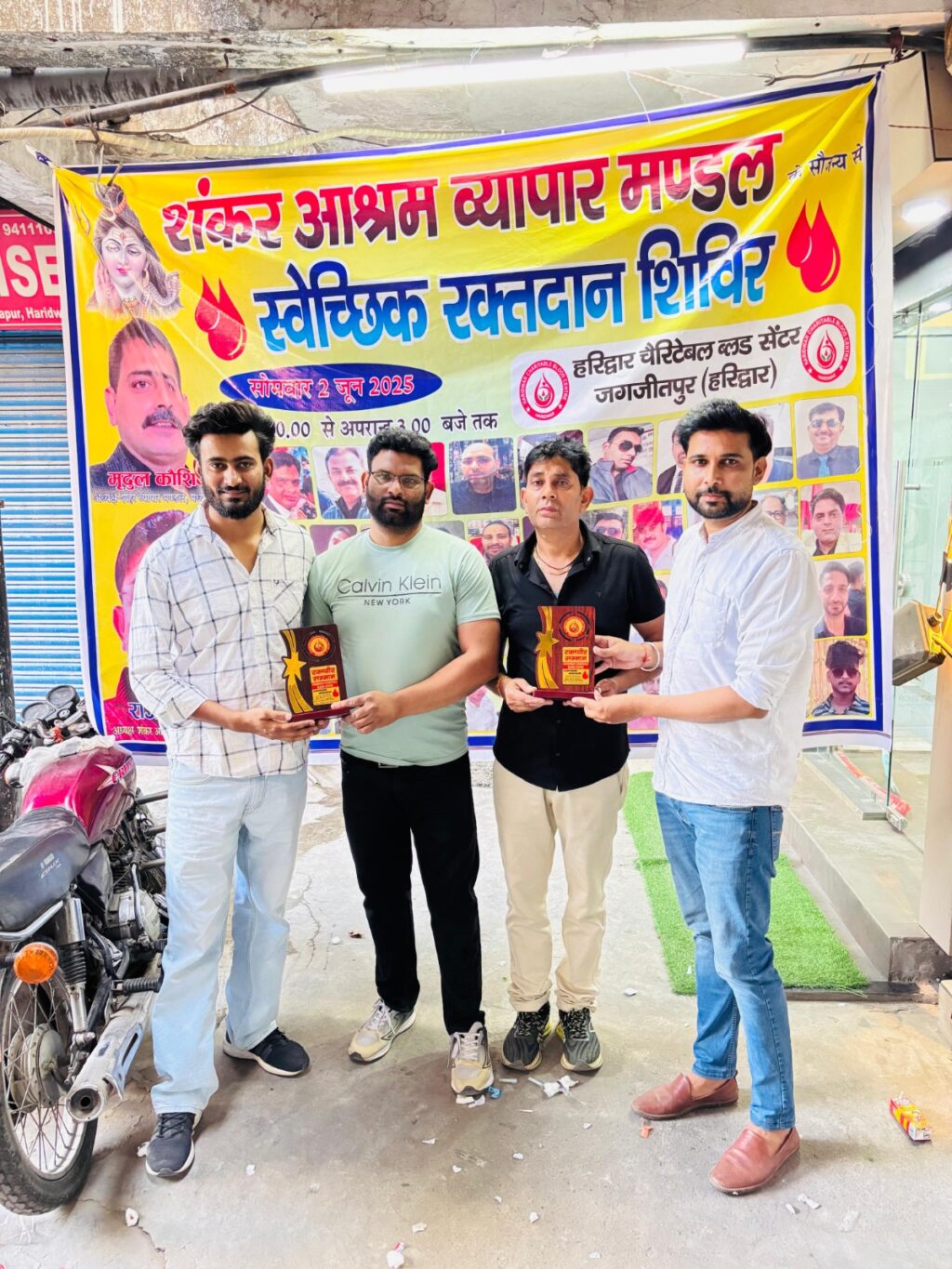 हरिद्वार: शंकर आश्रम व्यापार मंडल अध्यक्ष राजेश कुमार के सयोजन में स्वैच्छिक रक्तदान शिविर का आयोजन किया गया।रक्तदान शिविर में शहर के लोगो ने बढ़ चढ़ कर हिस्सा लिया। शहर व्यापार मंडल मध्य हरिद्वार के अध्यक्ष मृदुल कौशिक ने रक्तदान शिविर में सहयोग किया और रक्तदाताओं का उत्साहवर्द्धन किया।शिविर में 25रक्तवीरों में रक्तदान किया।शंकर आश्रम व्यापार मंडल अध्यक्ष राजेश कुमार ने कहा कि प्रत्येक व्यक्ति को रक्तदान अवश्य करना चाहिए।जिससे किसी भी ज़रूरतमंद को रक्त की कमी के कारण समस्या का सामना ना करना पडे।उन्होंने कहा कि समाज के प्रति दायित्व का निर्वहन करते हुए व्यापार मंडल की और आगे भी रक्तदान शिविर का आयोजन किया। शहर व्यापार मंडल मध्य हरिद्वार के अध्यक्ष मृदुल कौशिक ने रक्तदान शिविर का आयोजन करने के लिए शंकर आश्रम व्यापार मंडल की सराहना करते हुए कहा कि रक्तदाताओं द्वारा दिए गए रक्त से किसी का जीवन बचाने में सहायता मिलती है।इसीलिए रक्तदान को जीवन दान भी कहा जाता है। रक्तदाताओं में प्रदीप कुमार,सोनी अली,आसिफ़,राहुल,शादाब,राकेश हलवाई,दिनेश अरोड़ा,केशव,आकाश, सागर,नीतीश राजपूत,नितिन गुप्ता, मनोज कुमार आदि प्रमुख रहे।