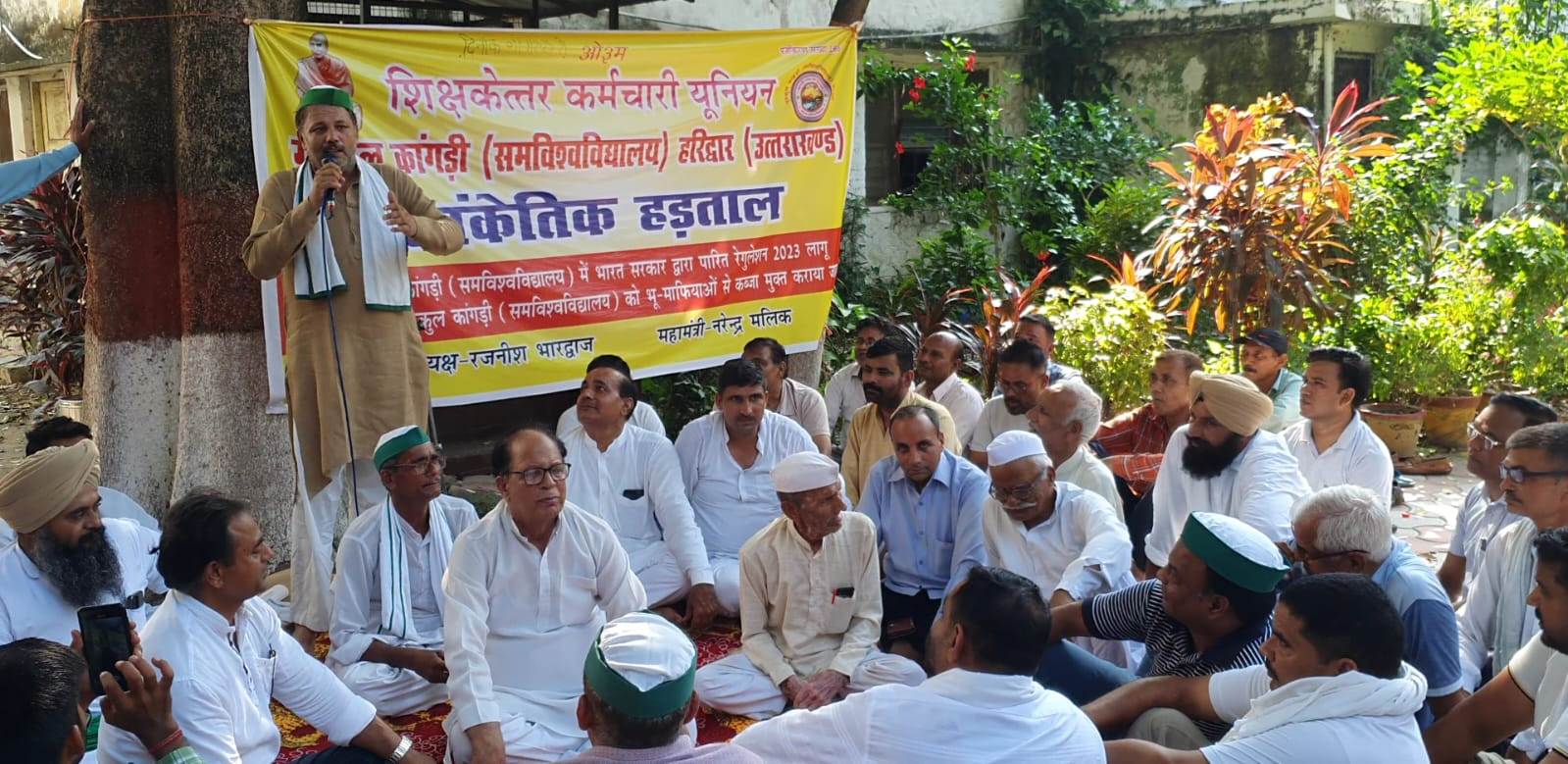 हरिद्वार: गुरुकुल कांगड़ी समविश्वविद्यालय में चल रही कर्मचारियों की सांकेतिक हड़ताल को भारतीय किसान यूनियन (भाकियू) ने समर्थन दिया है। भाकियू (टिकैत) के मंडल अध्यक्ष संजय चौधरी ने हड़ताल को संबोधित करते हुए कहा कि गुरुकुल की गरिमा और शैक्षिक वातावरण को दूषित नहीं होने दिया जाएगा। उन्होंने कहा कि भाकियू संगठन स्तर पर गहन विचार-विमर्श के बाद इस आंदोलन में शामिल हुआ है।