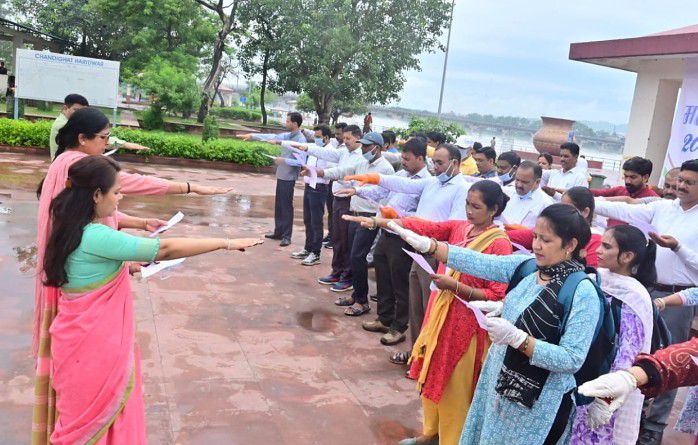 इस अवसर पर मुख्य विकास अधिकारी आकांक्षा कोण्डे ने कहा कि मां गंगा और उसकी सहायक नदियों को साफ एवं स्वच्छ रखने तथा नदियों के संरक्षण एवं संवर्द्धन के लिए जनपद में आज से सितंबर 2025 तक ग्राम स्तर तक विशेष स्वच्छता अभियान चलाए जाएंगे। इसमें मां गंगा के सभी घाटों की सफाई कराई जाएगी और ग्राम स्तर तक भी नमामि गंगे परियोजना एवं जिला पंचायत राज विभाग की ओर से कार्यक्रम आयोजित किए जाएंगे। इन कार्यक्रमों में लोगों को नदियों को साफ एवं स्वच्छ रखने और सिंगल यूज प्लास्टिक का उपयोग न करने के लिए जागरूक किया जाएगा। उन्होंने यह भी बताया कि नदियों के संरक्षण में मानव जीवन के योगदान के संबंध में शिक्षा विभाग के माध्यम से छात्र एवं छात्राओं से निबंध एवं पेंटिंग प्रतियोगिता का भी आयोजन किया जाएगा। आकांक्षा कोण्डे ने उपस्थित अधिकारियों एवं कार्मिकों को नदियों को साफ-स्वच्छ रखने की शपथ भी दिलाई। इस अवसर पर परियोजना निदेशक के.एन. तिवारी, जिला विकास अधिकारी वेदप्रकाश सहित कई अन्य अधिकारी और कार्मिक उपस्थित रहे।