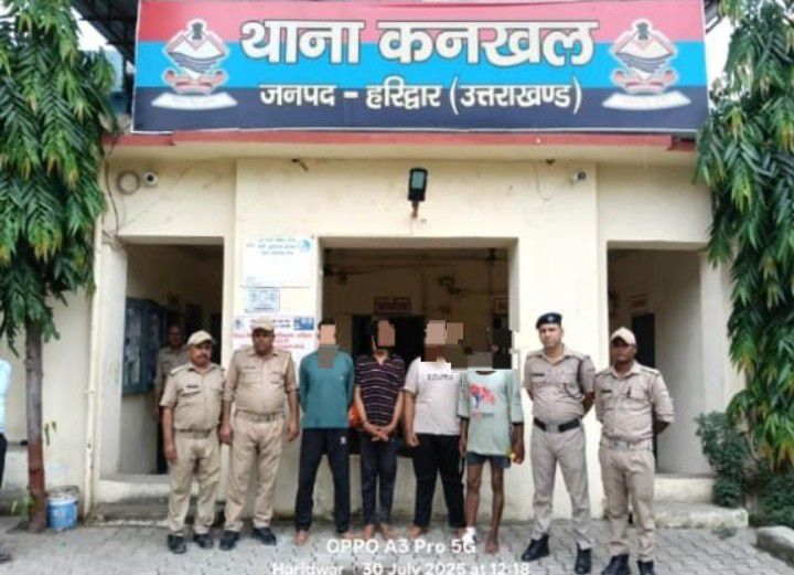 हरिद्वार। जियापोता गांव में एक युवक पर हमला कर मारपीट करते हुए घायल करने के मामले में थाना कनखल पुलिस ने बाप-बेटे सहित चार आरोपियों को गिरफ्तार कर लिया है। पुलिस टीम ने मान सिंह पुत्र चंद्रपाल, सुमित पुत्र मान सिंह, अनुज पुत्र मान सिंह निवासी इक्कड़ कलां थाना पथरी और कृष्ण पुत्र रामसिंह निवासी ग्राम शाहपुर शीतलाखेड़ा थाना पथरी को गिरफ्तार कर घटना में प्रयुक्त तलवार, सब्बल और लोहे की रॉड बरामद कर ली है।