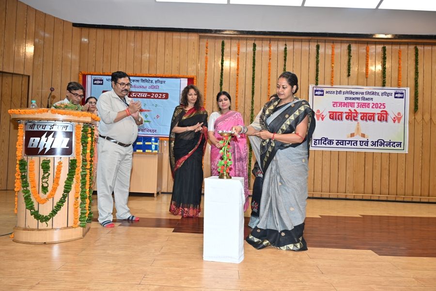 हरिद्वार।बीएचईएल हरिद्वार में मनाए जा रहे राजभाषा उत्सव-2025 के अंतर्गत,कर्मचारियों के परिजनों के लिए“बात मेरे मन की”कार्यक्रम का आयोजन किया गया। कार्यक्रम की मुख्य अतिथि बीएचईएल लेडीज क्लब हरिद्वार की संरक्षिका श्रीमती नंदन कुमारी तथा महाप्रबंधक (मानव संसाधन)संतोष कुमार गुप्ता व लेडीज क्लब की पदाधिकारियों ने दीप प्रज्वलन द्वारा कार्यक्रम का शुभारम्भ किया।कार्यक्रम में बीएचईएल कर्मचारियों की पत्नी एवं बच्चों ने कविता,कहानी एवं संस्मरण आदि के माध्यम से अपने मन की बात साझा की।समारोह को सम्बोधित करते हुए श्रीमती नंदन कुमारी ने,सभी प्रस्तुतियों की सराहना करते हुए कहा कि हमारे जीवन में कार्य के साथ-साथ,परिवार की भूमिका भी बहुत महत्त्वपूर्ण होती है।उन्होंने कहा कि कर्मचारी केवल संस्थानिक दायित्वों को ही नहीं निभाते,बल्कि वे अपने परिवार की खुशियों,सपनों एवं भविष्य का भी निर्माण करते हैं।महाप्रबंधक (मानव संसाधन) संतोष कुमार गुप्ता ने सभी अतिथियों का स्वागत करते हुए बताया कि इस कार्यक्रम की संकल्पना,हिंदी के प्रति हमारे परिजनों के लगाव को ध्यान में रख कर की गई है।उन्होंने कहा कि किसी भी संस्थान की उन्नति में कर्मचारियों के परिवारों की भागीदारी भी बेहद अहम होती है। सभी प्रतिभागियों को श्रीमती नंदन कुमारी तथा संतोष कुमार गुप्ता द्वारा स्मृति चिह्न प्रदान कर सम्मानित भी किया गया।इस अवसर पर वरि.उप महाप्रबंधक (राजभाषा) हरीश सिंह बगवार तथा उपप्रबंधक (राजभाषा) श्रीमती शशि सिंह सहित राजभाषा विभाग के अधिकारी एवं कर्मचारी आदि उपस्थित थे।