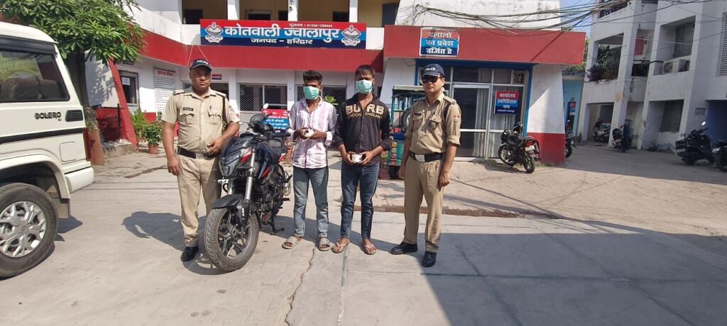 हरिद्वार: ज्वालापुर कोतवाली पुलिस और एएनटीएफ टीम ने मोटरसाइकिल से स्मैक तस्करी कर रहे दो आरोपियों मोहसिन और समीर को गिरफ्तार किया है। उनके कब्जे से 14.2 ग्राम स्मैक और तस्करी में प्रयुक्त बाइक बरामद की गई है। दोनों के खिलाफ एनडीपीएस एक्ट के तहत मुकदमा दर्ज किया गया है।