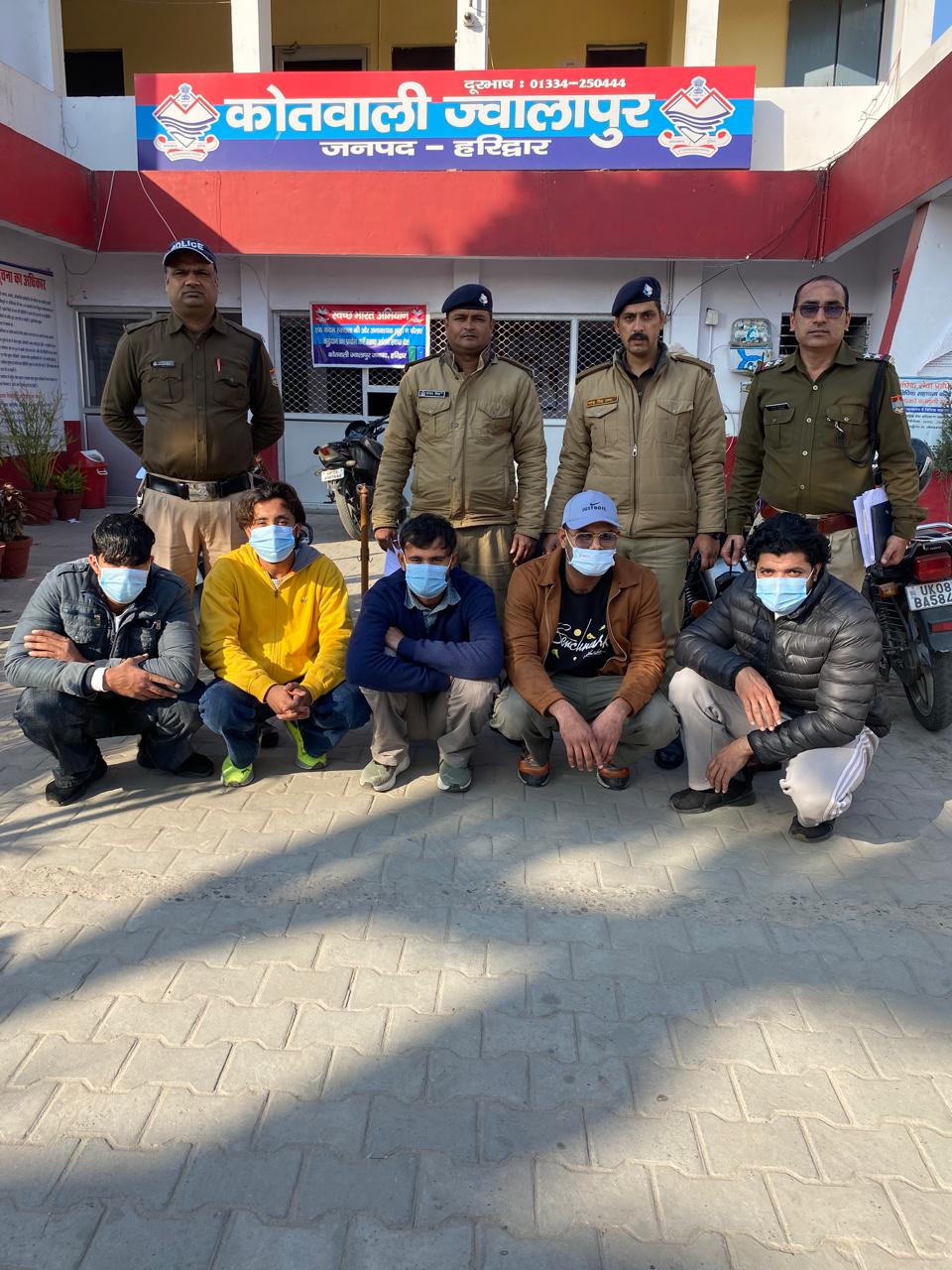हरिद्वार। ज्वालापुर कोतवाली में बयान दर्ज कराने पहुंचे दो गुट आपस में ही भिड़ गए। मामला 3 फरवरी को हुई एक मारपीट से जुड़ा था, जिसकी विवेचना के लिए एएसआई गंभीर तोमर ने दोनों पक्षों को बुलाया था। समझाने के बाद भी हंगामा न रुकने पर पुलिस ने शांति व्यवस्था भंग करने के आरोप में पांच युवकों (सुब्हान, शकीर, अमन, आहिल खान और साहिब मलिक) को गिरफ्तार कर लिया है।