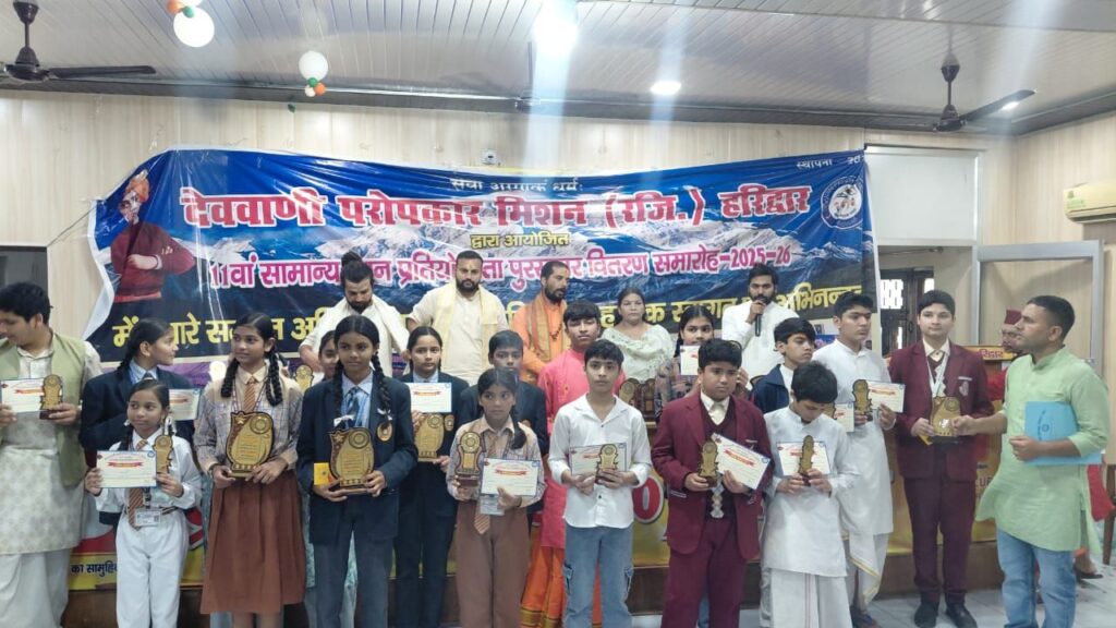 देववाणी परोपकार मिशन द्वारा आयोजित प्रतियोगिता के विजेताओं को मेयर किरण जैसल ने पुरस्कृत किया। आलोक पांडे ने प्रथम स्थान प्राप्त किया। समारोह में छात्र-छात्राओं को स्कूली शिक्षा के साथ सामान्य ज्ञान बढ़ाने के लिए प्रेरित किया गया।